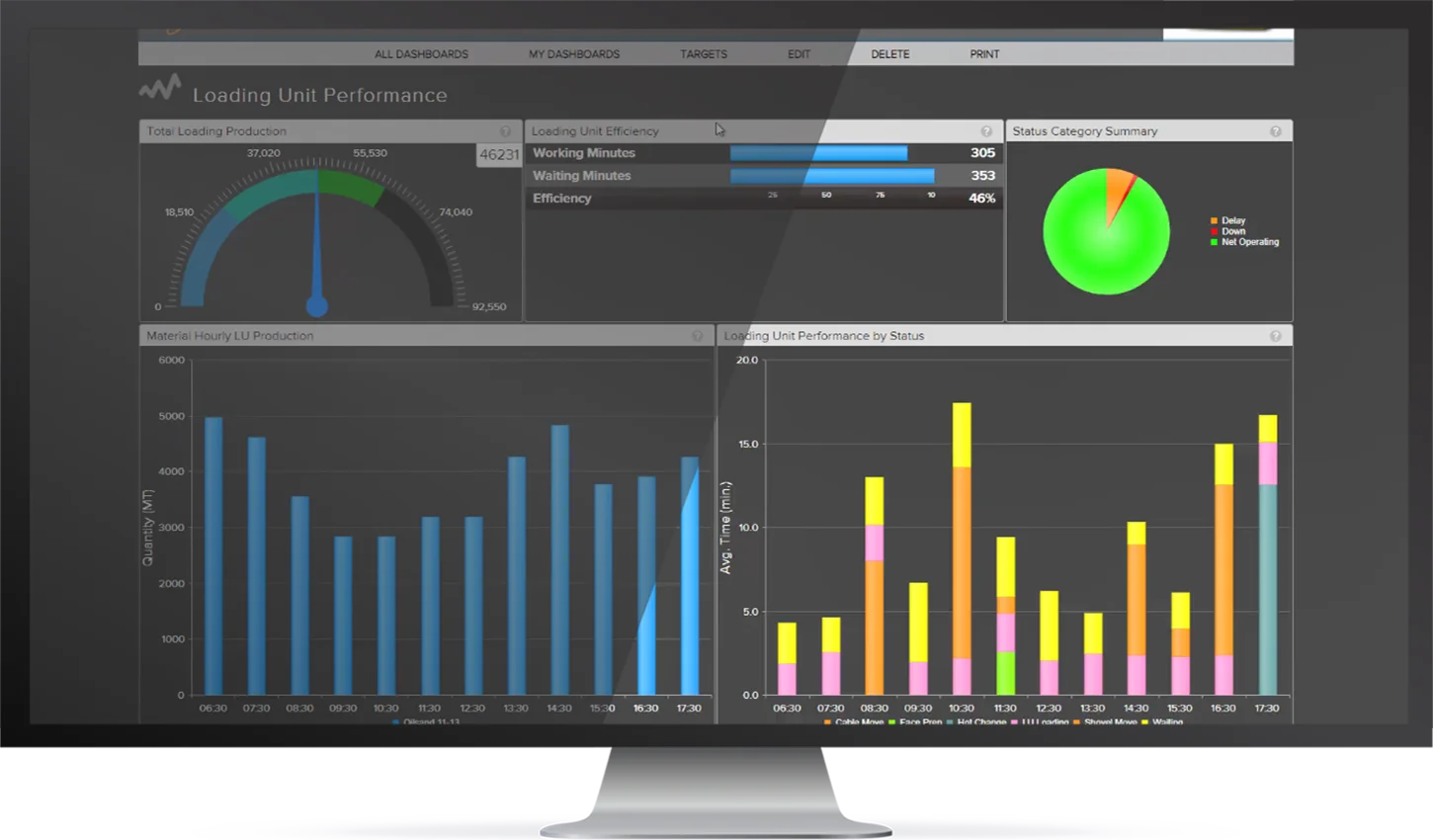 50+ widgets give total visibility to your utilization, grade quality, cycle times, hourly production, and other KPIs — all at a glance.